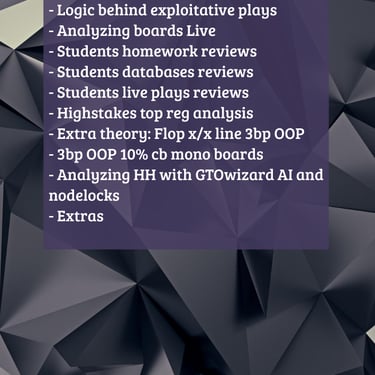 ✔ Get a deep understanding of GTO and learn to craft effective exploits for any spot