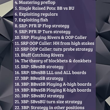 ✔ This course is aimed to be the only poker guide you'll ever need. With GTO fundamentals always remaining consistent, all you have to do is adjust your exploits as game trends shift